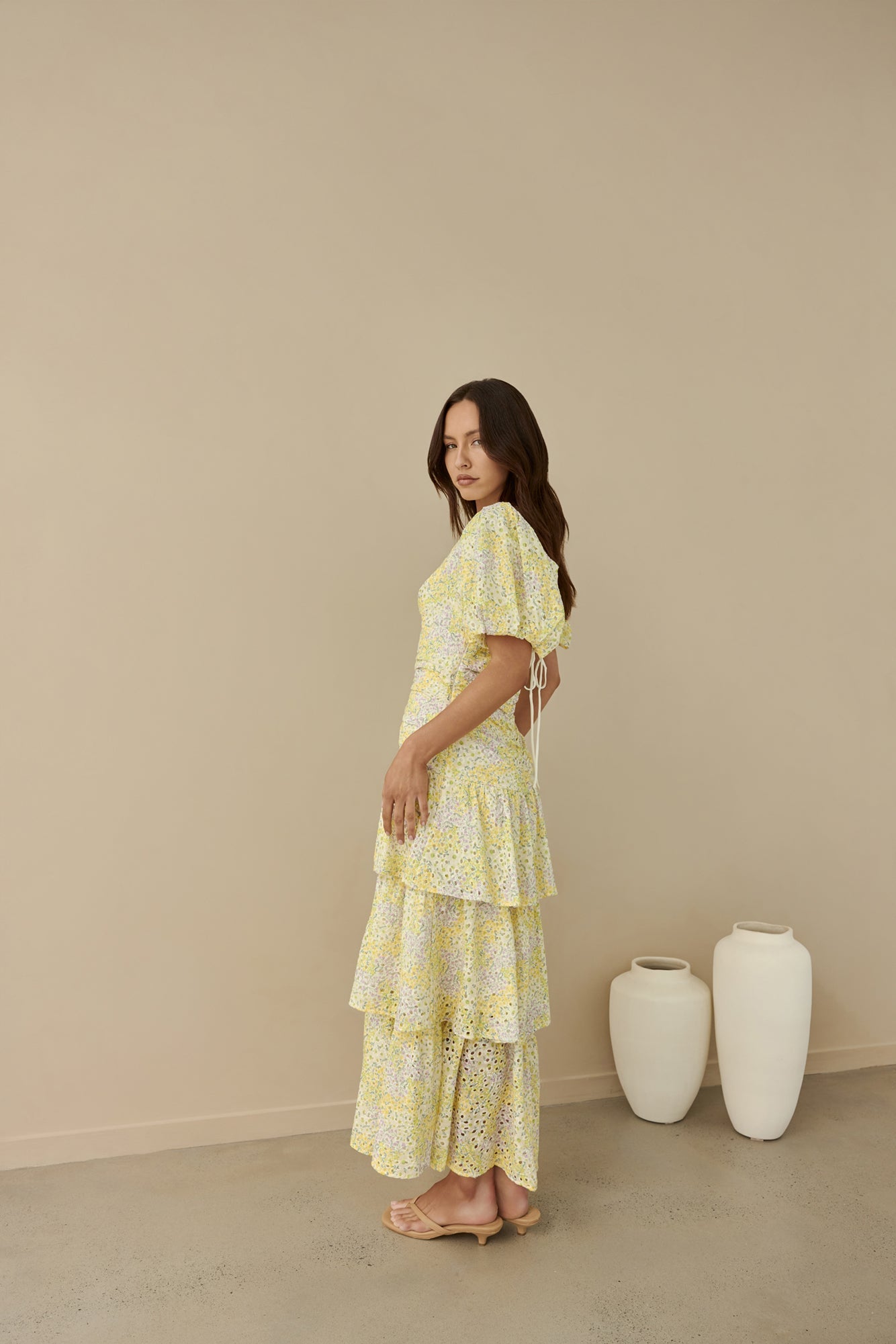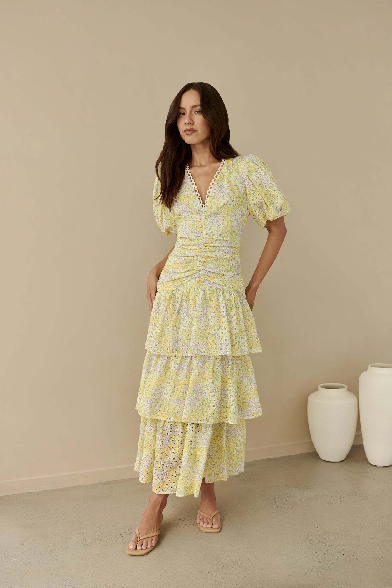 Chase the sun in the Corinna Tiered Maxi Dress by ASTR the Label, a dreamy piece inspired by afternoons in the Riviera. Style with mules and gold adornments for an effortlessly elegant look.