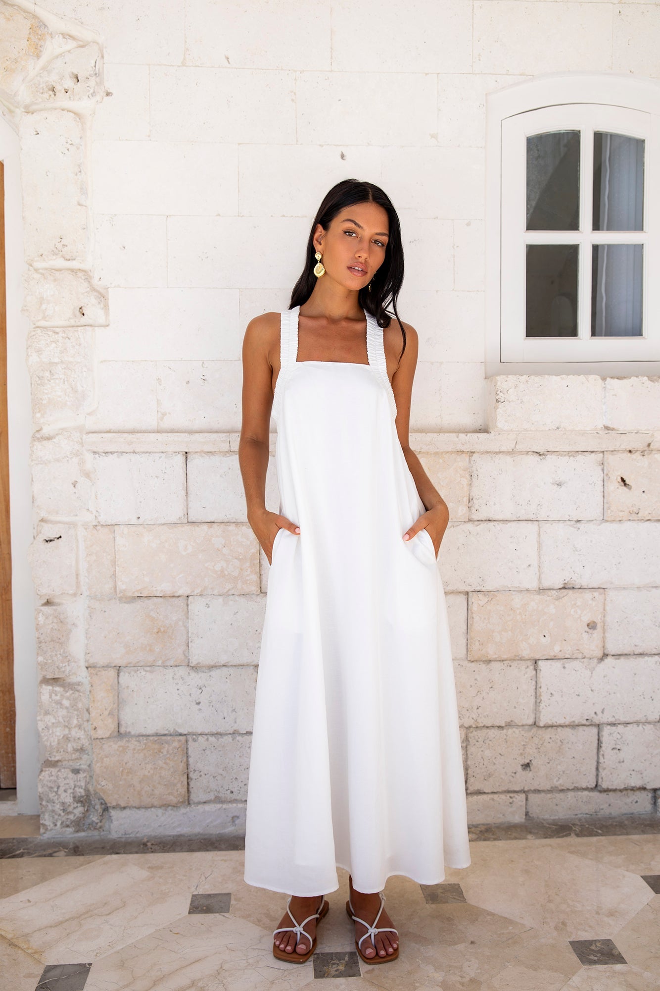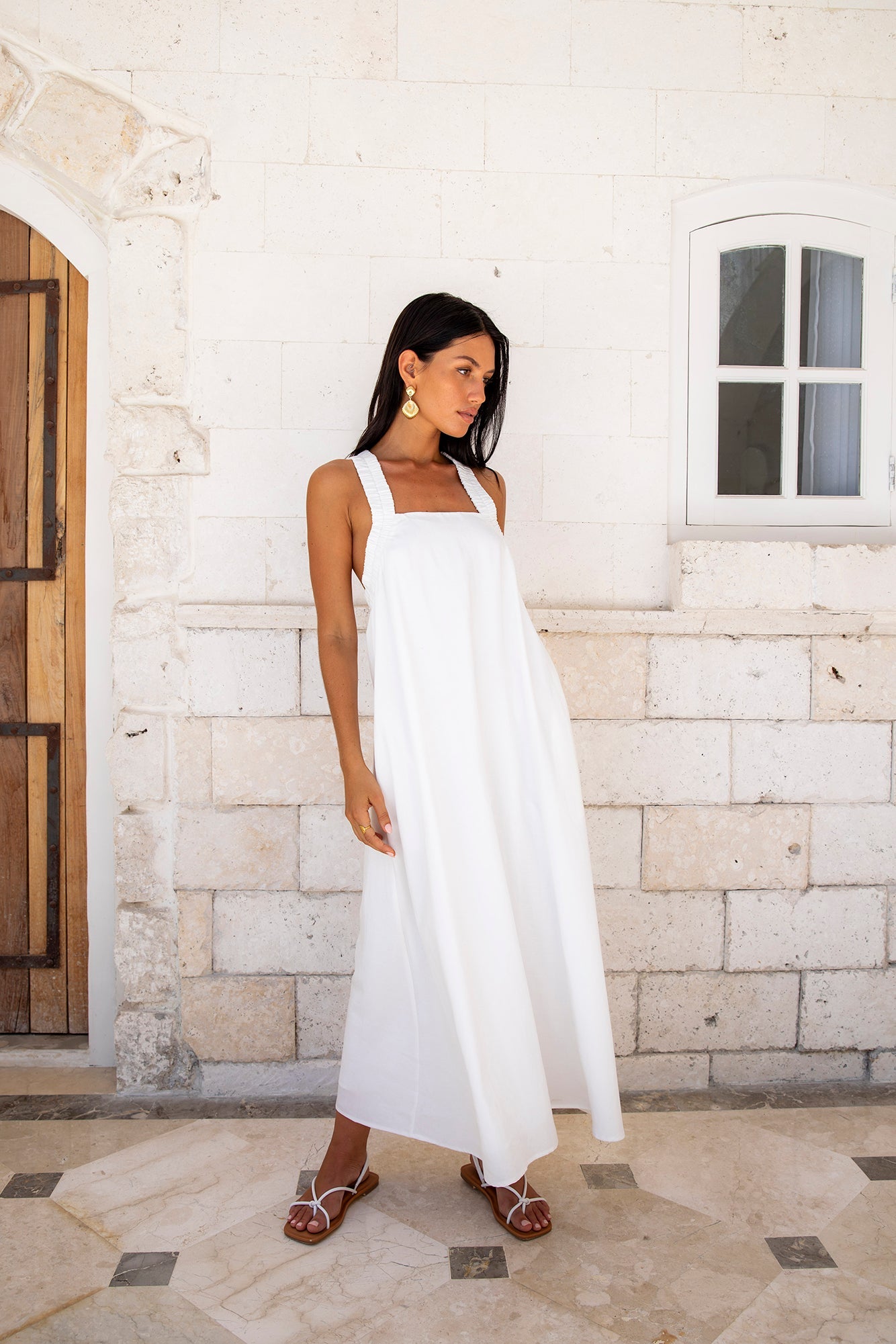 Exclusively designed by Fortunate One, the Dear Eclipse Maxi Dress is a classic staple made for summers in the tropics. Style with sandals and dainty gold jewelry for an effortlessly laid-back look.
