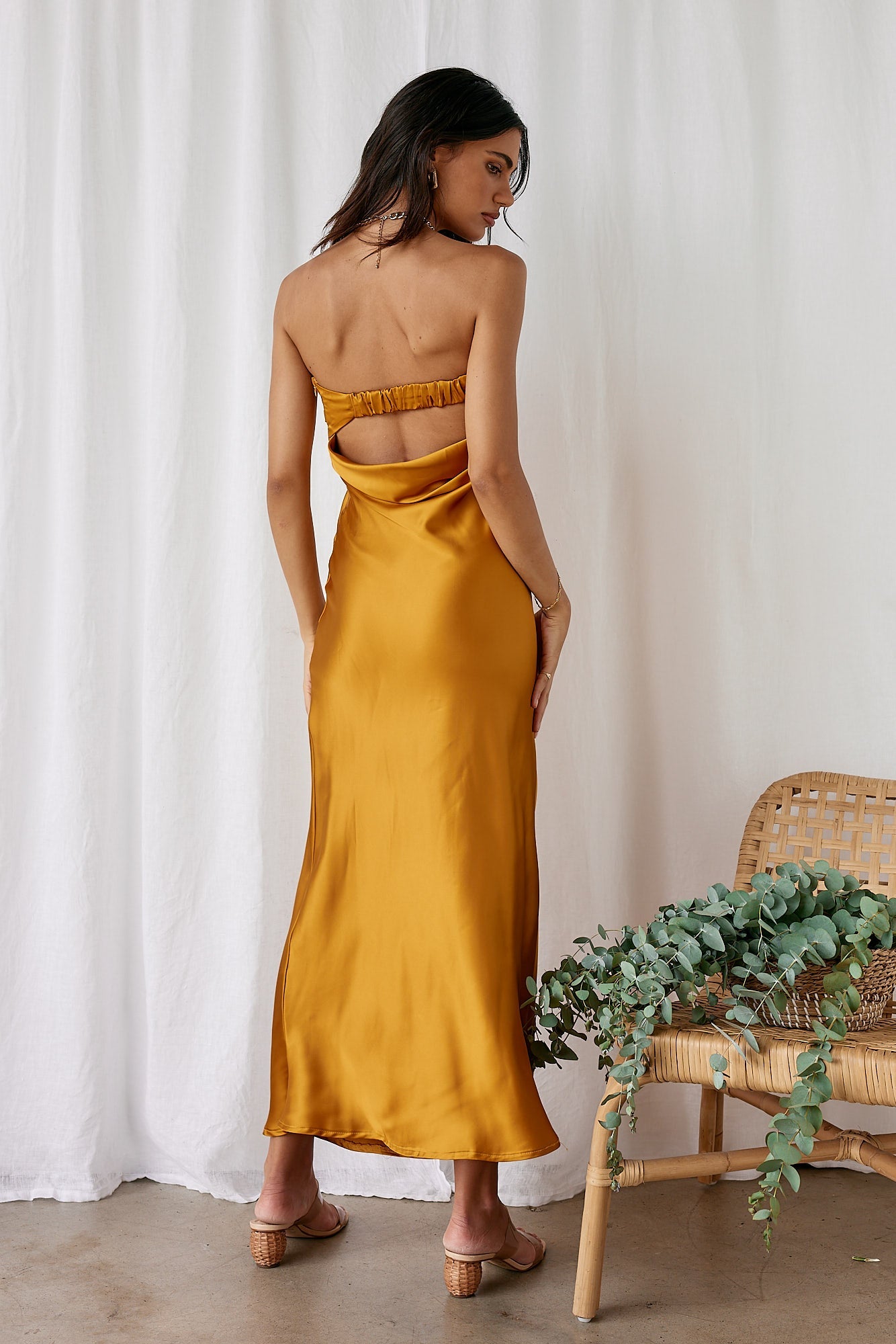 Celebrate the best that life has to offer in our Gleam In Gold Maxi Dress. We'll be partying on the rooftops of Santorini and styling ours with neutral block heels and gold adornments.