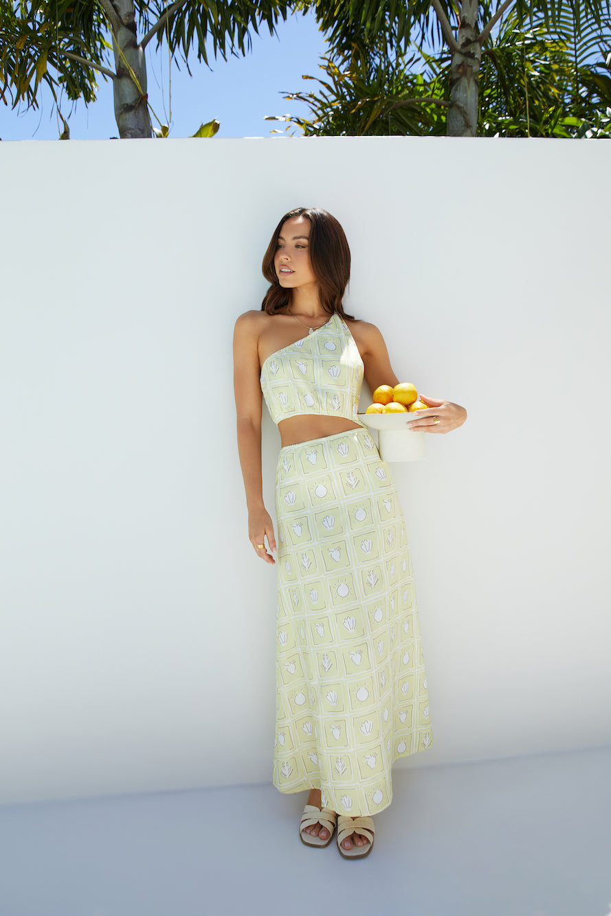 The Golden Tides Midi Dress is a stunning embodiment of coastal elegance, designed to make a statement on your next getaway. This one-shoulder maxi dress features a captivating coastal shell print that dances across the fabric, evoking the serene beauty of sun-kissed shores. A daring cut-out at the center adds a touch of intrigue, while the flowing silhouette offers effortless movement, making it perfect for warm days by the sea or evenings under the stars. Whether you’re enjoying a holiday retreat or a coastal escape with friends, the Golden Tides Midi Dress is your ultimate companion for a relaxed yet chic vacation style.