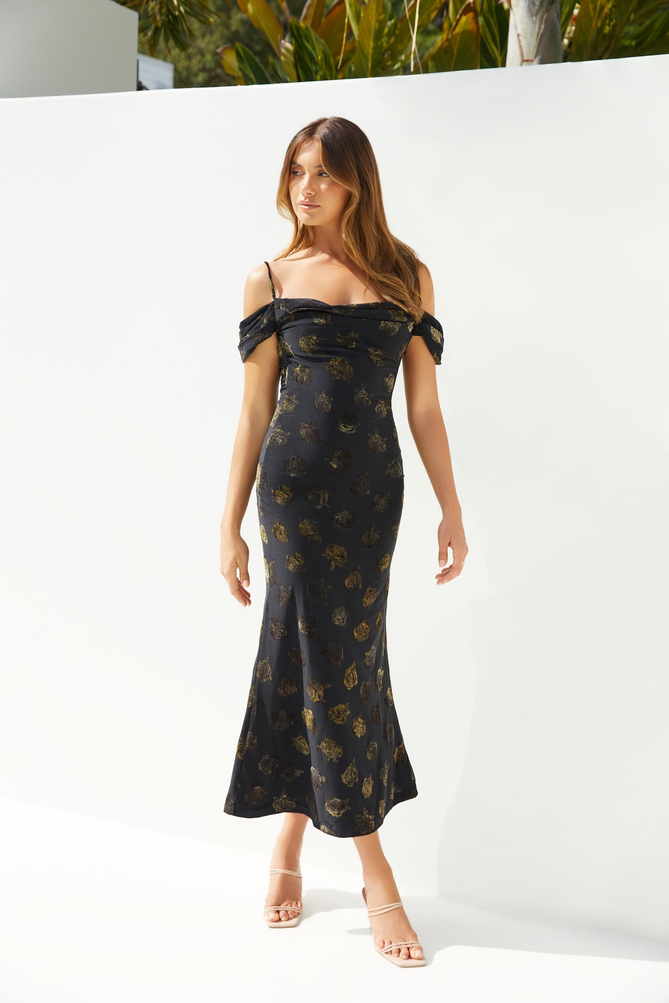 The Golden Twilight Midi Dress in Black radiates elegance and sophistication. Designed with an off-the-shoulder neckline, this black midi dress features exquisite gold floral detailing that adds a touch of opulence to its timeless silhouette. Its flattering fit enhances your natural beauty, while the graceful off-the-shoulder style brings a hint of romance. Perfect for evening events, formal occasions, or nights where you want to shine, the Golden Twilight will have you feeling confident and effortlessly stunning.