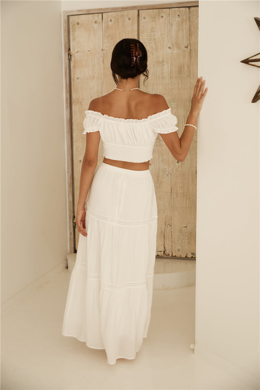 Introducing the epitome of summer sophistication, the Growing Curiosities Set in White. Elevate your vacation wardrobe with this flawless ensemble, adorned with billowy details and embellishments that embody the essence of summer living. Your perfect summer getaway deserves nothing less than this ultimate holiday attire.