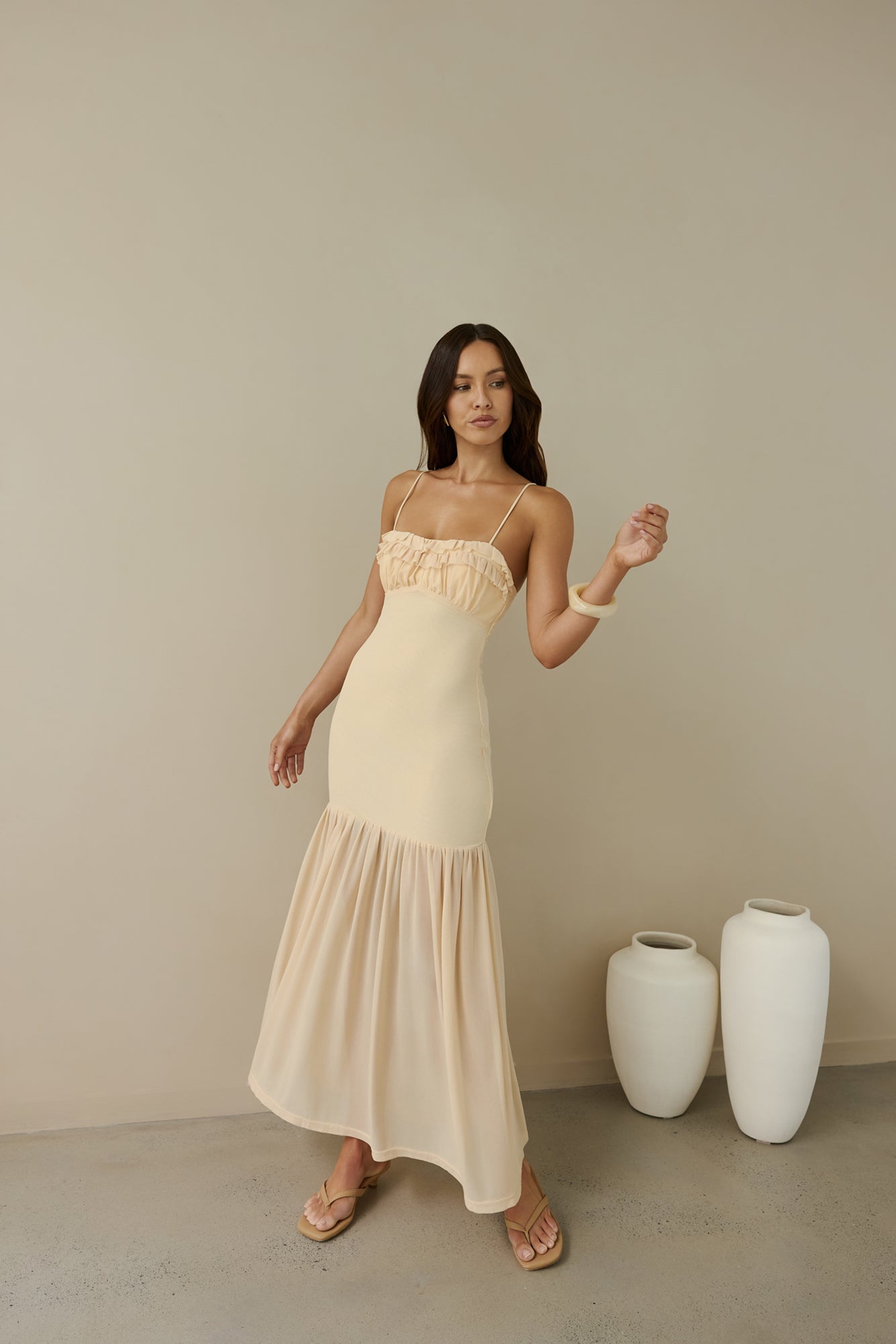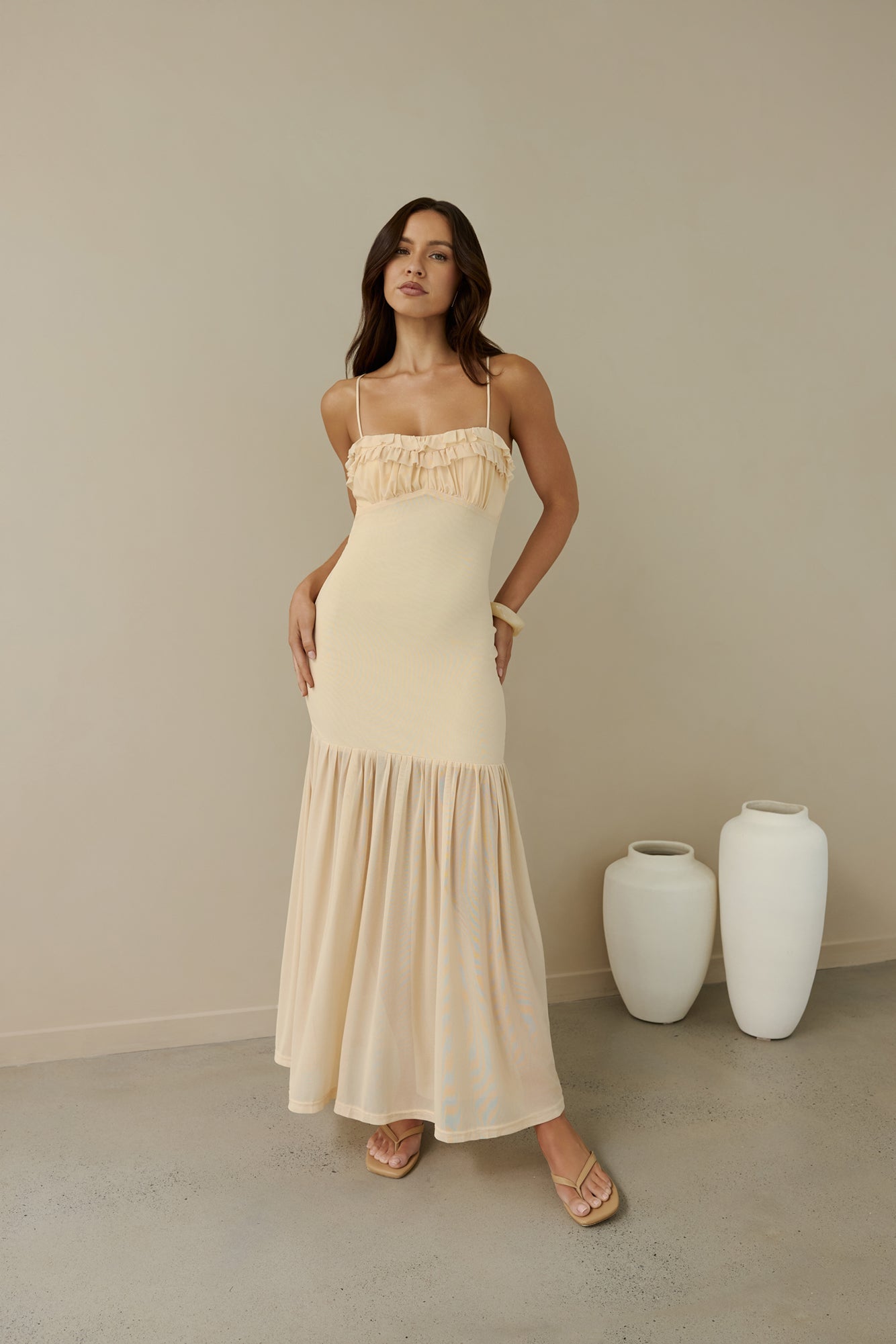 Step into a summer dream with the Just Right Mesh Maxi Dress. Featuring a frill neckline, a flowy skirt and sheer panelling, this dress is the perfect balance of elegant and relaxed. Style with mules and lightly curled hair.