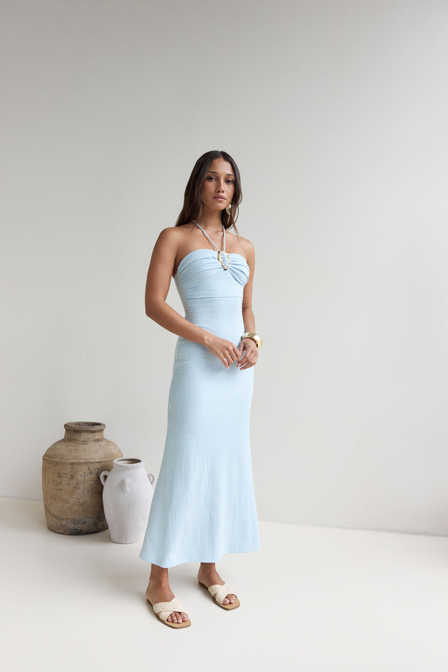 Karmic Blessing Strapless Halter Maxi Dress Blue