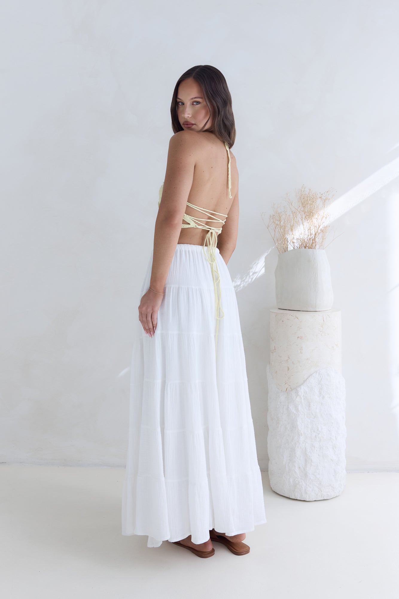 Full of sunshine, the Monte Carlo Muse Knit Halter Top is a must-have vacay essential. It features a halter tie, a crochet design and a crisscross tie-up back. Style it with pants and sandals for a laid-back vacay look.