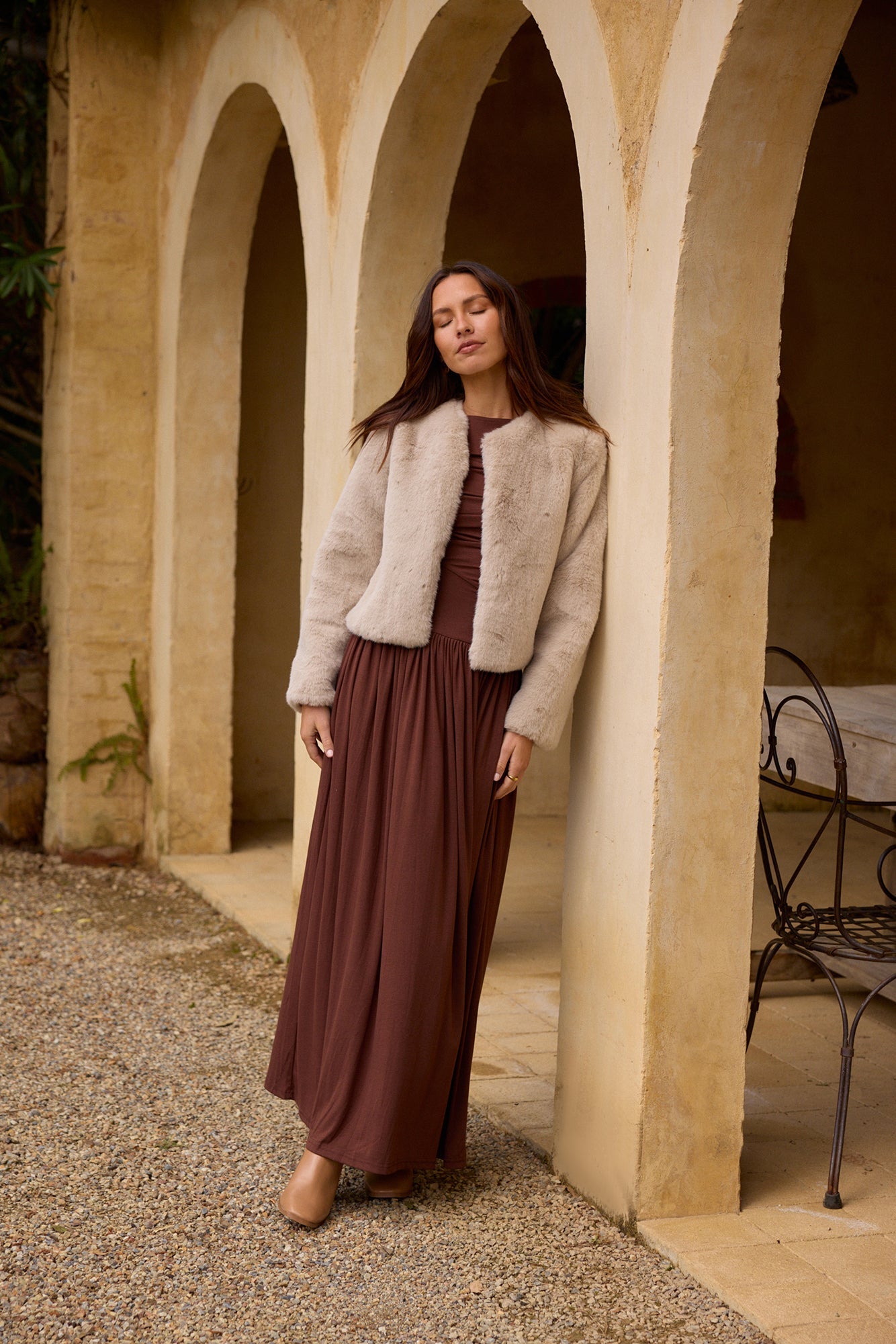 The Nalla Maxi Dress in Brown embodies simplicity and elegance. With its rich texture and multiple design details, this maxi dress is ideal for a variety of occasions, from weddings to wine tastings. Its versatile style allows you to dress it up for a formal event or keep it casual for a laid-back gathering. No matter the setting, this stunning dress will ensure you look effortlessly chic.