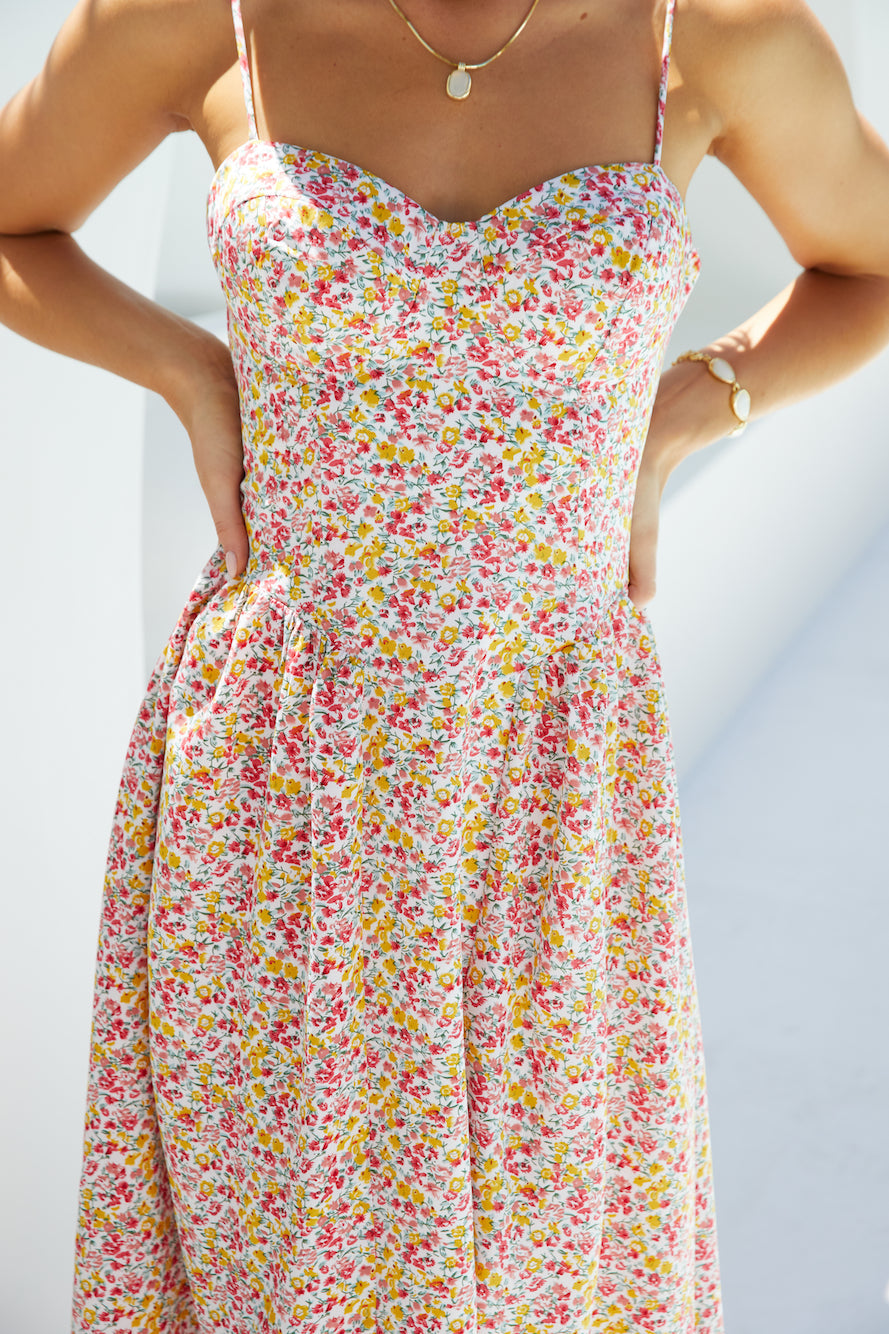 Step into the season of blooms with our Petal Play Midi Dress in Pink. Designed for sunlit garden gatherings and summer soirées, this floral midi dress captures the essence of effortless elegance. The contour cup bra-style bodice offers a flattering fit, accentuating your silhouette while providing comfort and support. Crafted in a soft pink hue with a vibrant floral pattern, this dress radiates charm and femininity.