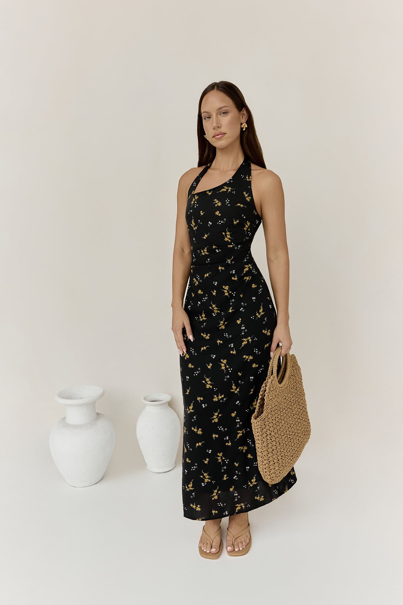 The Scarlet Hues Halter Maxi Dress is a captivating symphony of elegance. With its radiant hue and flowing silhouette, it creates a statement piece that effortlessly captures the allure of passion and sophistication. Style this dress with strappy heels and loose waves for an effortlessly chic look.