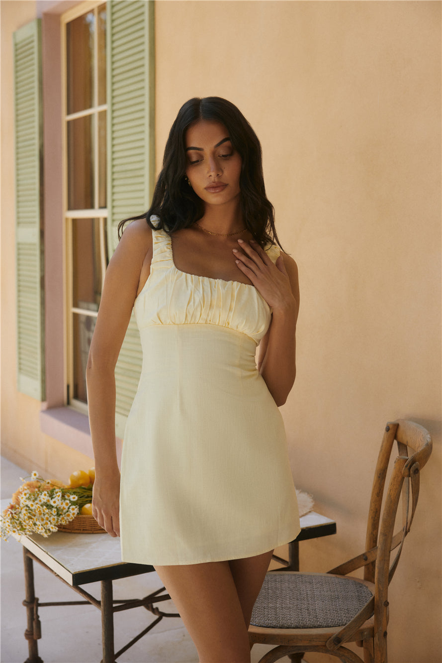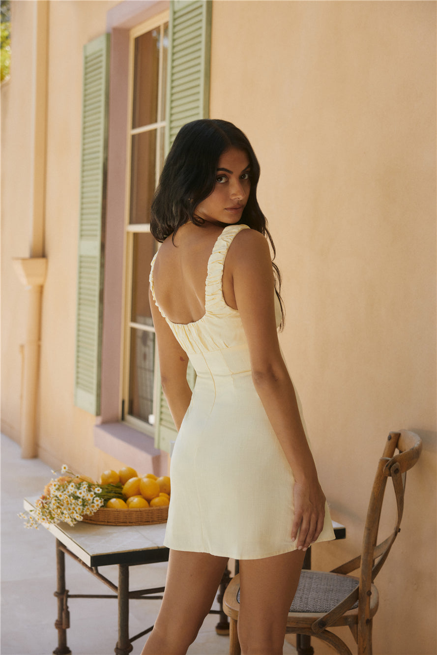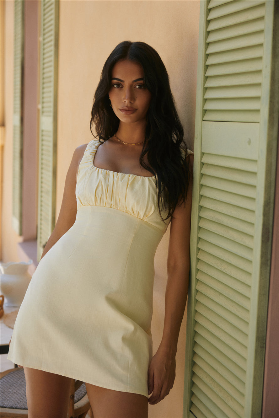 Effortless elegance meets summer sophistication in our Short and Sweet mini dress in Yellow. Designed for sunny days and warm evenings, this dress captures the essence of laid-back moments with its neutral hue and sleek silhouette.