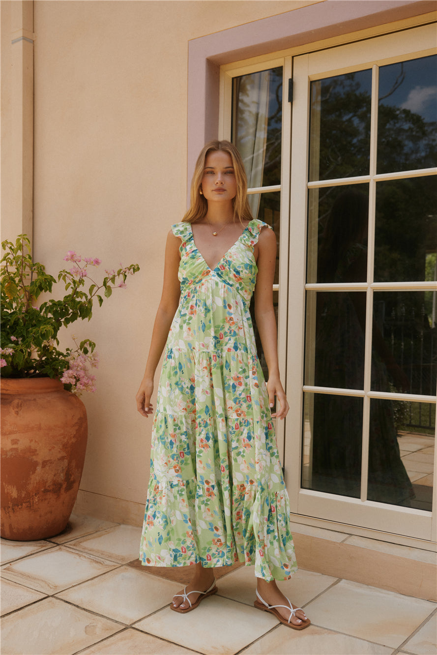 Softly Blooming Maxi Dress Green