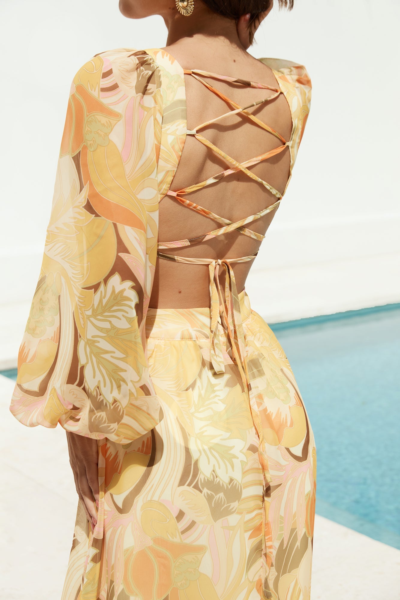 Starlight Blooms Long Sleeve Maxi Dress Yellow