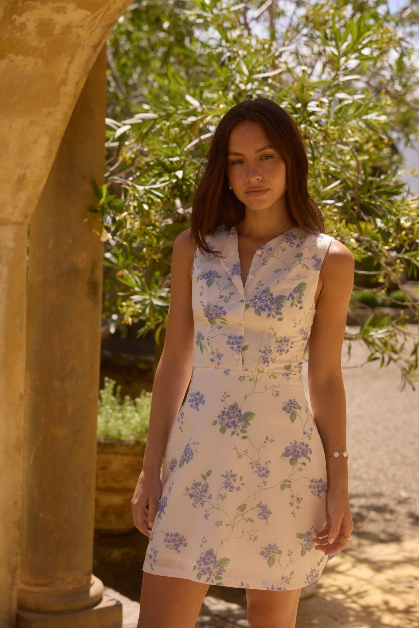 The Tessa Floral Mini Dress in Blue is the perfect choice for your next garden soirée. With a charming cut-out back and delicate button detailing down the front, this dress combines comfort with class, letting you feel effortlessly stylish and relaxed for any occasion.