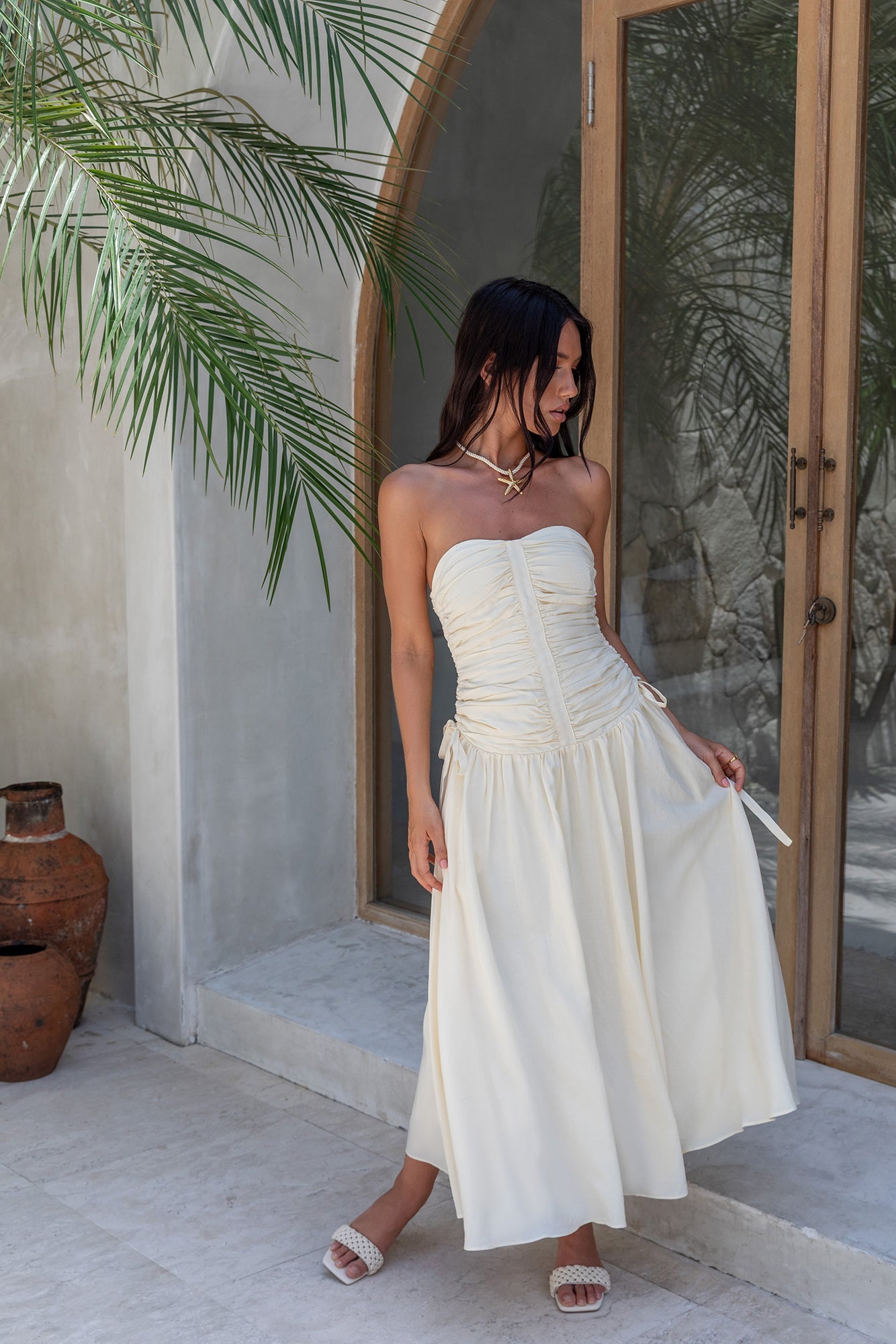 Elegant and timeless, the Zori Maxi Dress is the perfect blend of sophistication and style. A statement piece made for your summer wardrobe, you'll be dancing through a French chateau in this maxi. Pair yours with classic white heels and gold adornments.
